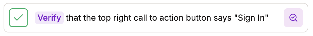 After executing your verify action, you can view the result of your assertion.