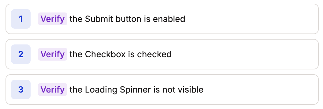 - Timing: Add appropriate waits before verifications when needed