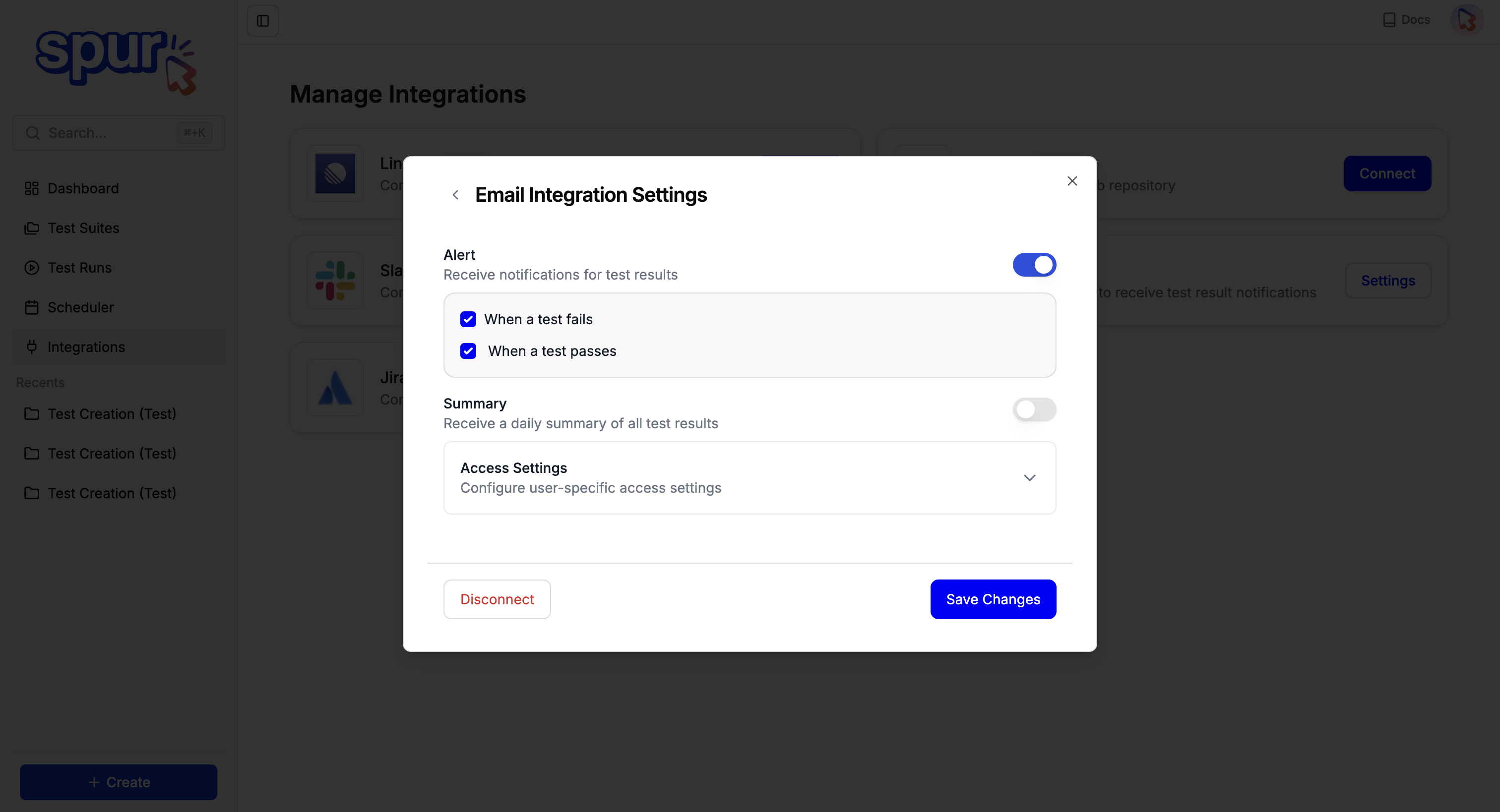 Configure specific access settings for each user in your application. By default, every user in your application will receive email notifications for all tests.If you’ve given one person access, make sure to configure access for everyone else.