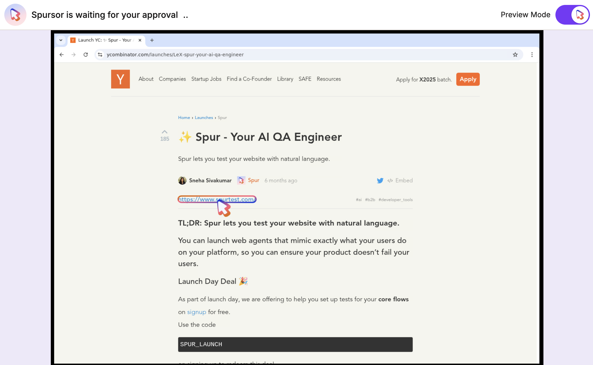 Preview Mode On: Spursor asks for approval