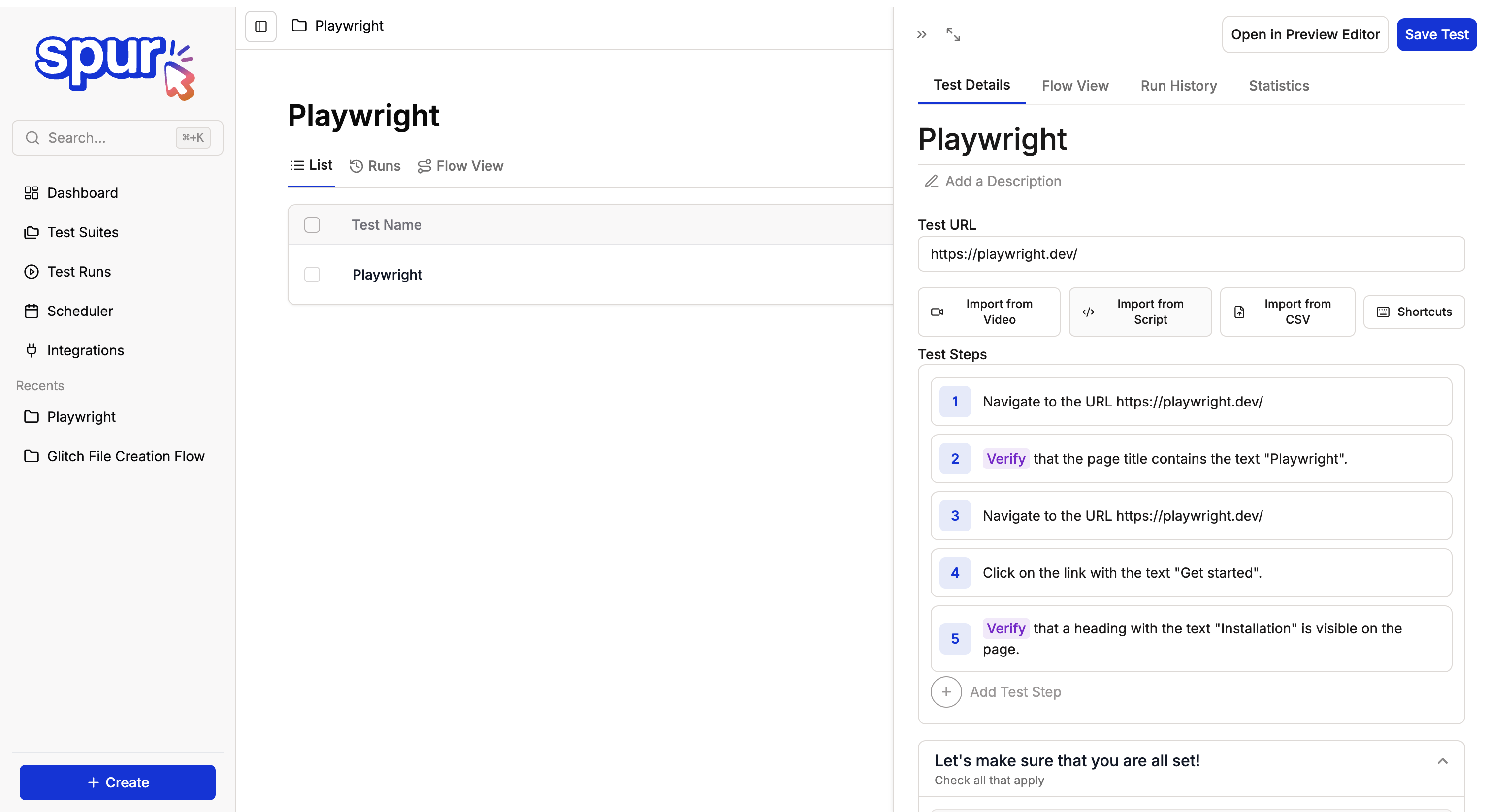 Script to test generation allows you to import a script, transforming them into test steps that can be run with SpurHow to generate Spur tests from scripts