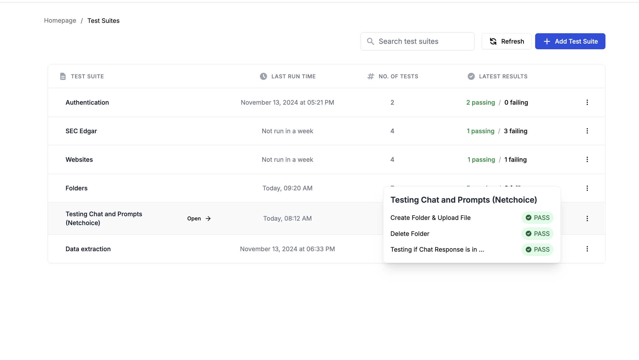 Test suites maintain the integrity of your testing workflow by executing tests in the correct sequence, ensuring each step builds upon the previous ones.